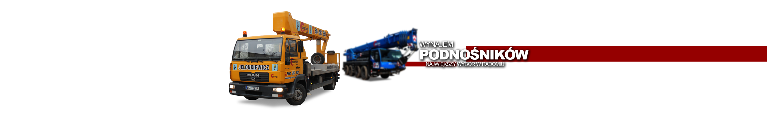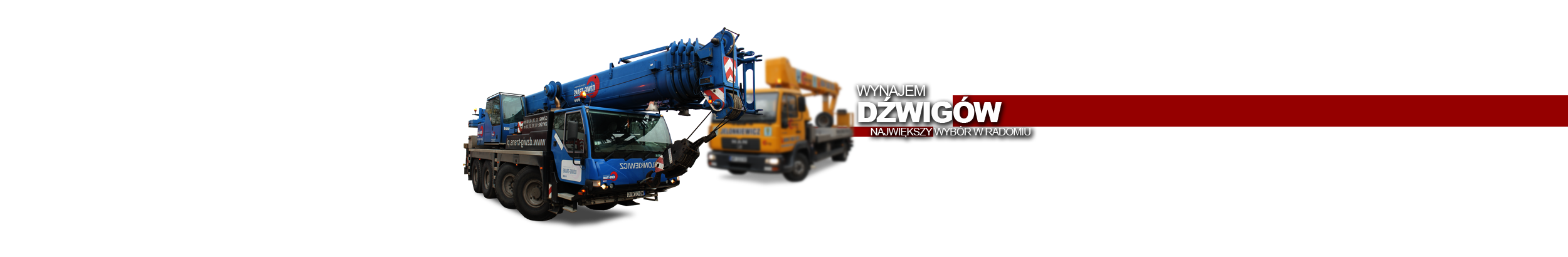 DŹWIG-TRANS Andrzej Jelonkiewicz wynajmuje dźwigi i podnośniki koszowe na terenie miasta : Radom, Kozienice, Starachowice, Kielce, Skarżysko-Kamienna, Opoczno, Przysucha. Ożarów, Puławy, Białobrzegi, Grójec, Warka, Dęblin, Ryki. Jak również w pozostałych miejscowościach w województwach: mazowieckie, lubelskie, świętokrzyskie, łódzkie oraz na terenie całego kraju. Zadzwoń i wynajmij dźwig lub podnośnik.